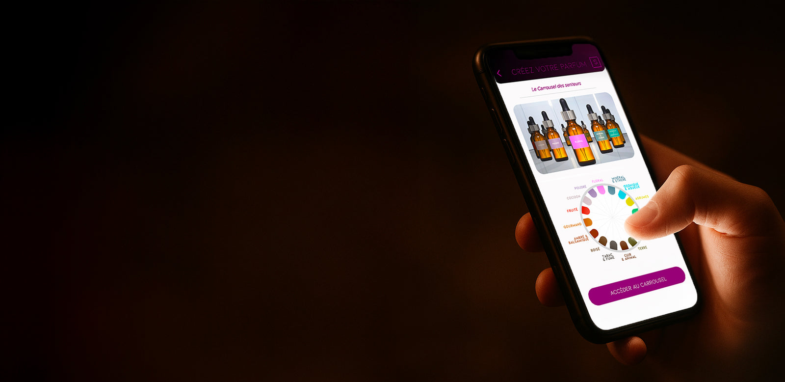 Laissez-vous guider sur l’application mobile SUPERFUMISTA pour décrire et composer votre parfum rêvé.