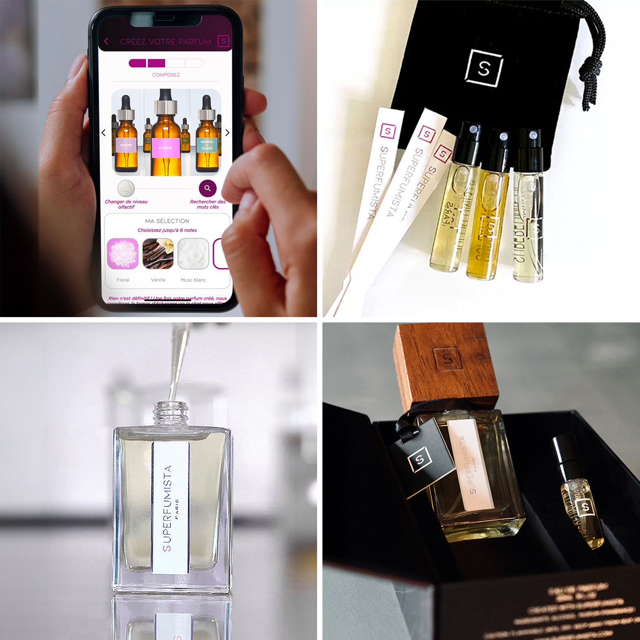 Let yourself be guided on the SUPERFUMISTA mobile application to describe and compose your dream perfume.
